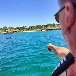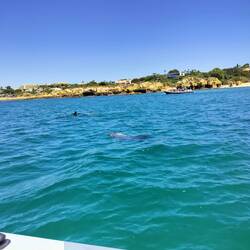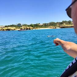 Der var vi heldige. 🥰 Skipperne på bådene er gode til at holde afstand og delfinerne havde bare travlt med at jage sardiner.