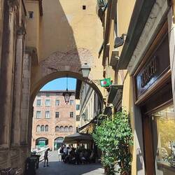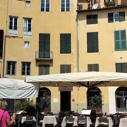 Sikke en oplevelse. Til at starte med gik vi gennem volden som ret overraskende indeholdt et tunnel system med smukke hvælvinger. En gammel by med høje smukke bygninger og kirker. Små gader med meget charmerende butikker og gode is. ☺️ Centrum af Lucca er et ovalt torv. Det er meget smukt. Men lige i dag er der for varmt til at sidde i der.Read more