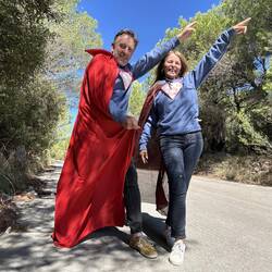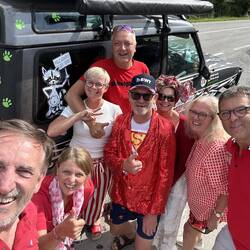 Wir haben es fast geschafft ! Noch 30km bis ins Ziel. In Poc machten wir unseren letzten Stopp. Zielvorbereitungen : Umziehen... ROT/WEISS im Ziel bringt 20 Extrapunkte.