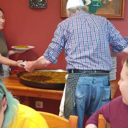 Lovely dinner - paella - made by octogenarian - and served by friendly and attentive volunteers from Colombia who worked hard the whole time to make our start a good one.