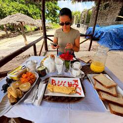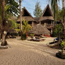 Bien arrivés à Kizimkazi dans un hôtel les pieds dans le sable. 🏝️
