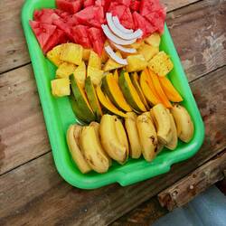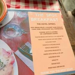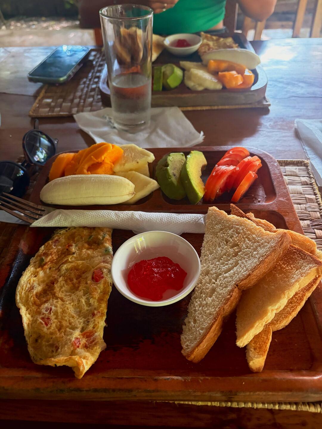 Après une nouvelle nuit difficile sans clim (surtout pour Florent et ses coups de soleil), ce matin, nouveau petit-déjeuner de l’hôtel !