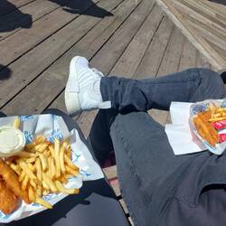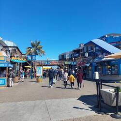 Nach der Rundfahrt haben wir den berühmten Pier 39 erkundet. Viele coole Geschäfte und Restaurants gibt es dort. Zum Mittagessen gab es für uns dann Fish & Chips und Chicken Tenders 😍.