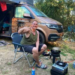 Es wird wärmer und wärmer und die Sonne hat enorme Kraft und im Dachzelt ist es um 08:00 Uhr gegen 20 Grad.
