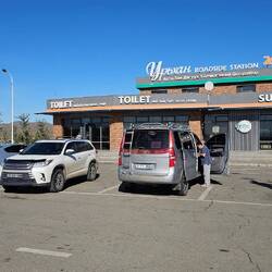 Stopp zum Tanken und Einkaufen. Ein TV-Team der lokalen Senders war auch unterwegs...😊