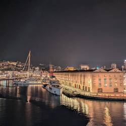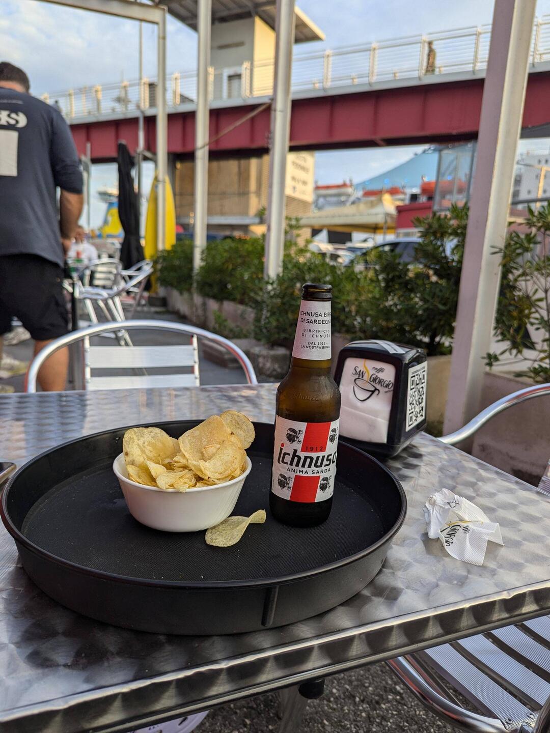 In Genua kamen wir dann in unseren ersten richtigen Stau der gesamten Reise. Wir waren aber ganz entspannt, hatten wir doch genug Zeitpuffer. Im Hafen gönnten wir uns noch in romantischer Atmosphäre ein Bier. Die letzten Minuten Internet nutze ich noch schnell für Duolingo und wir buchten einen Campingplatz, auf einer kleinen vorgelagerten Insel, direkt am Strand.