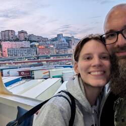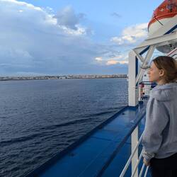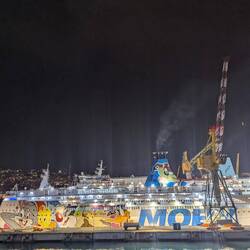 Nach einem obligatorischen Lidl-Stop für die deutschen Touristen vor der Fähre, kamen wir zeitig am Fähranleger an. Hier fand parallel Boarding der Moby und der Grimaldi-Fähre statt. Wir wurden trotzdem als letzte Spur auf die Fähre gelassen, aber hatten dafür nicht so viele Fahrzeuge hinter uns. nun stehen erstmal knapp 10h Fährfahrt an. Diesmal über Tag, ich bin gespannt.Read more