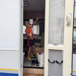Ich lernte Silvie und David, Andrews und Silvies Sohn kennen. Wirklich sehr sympathisch! David,7, ist eine Sportskanone und mega aktiv: Klettern, Skifahren, Fahrradfahren, Leichtathletik. Da kamen Ambrosy-Vibes auf! Ich denke, wenn Bruno noch ein bisschen älter wird, wäre das ein gutes Match. David entpuppte sich zusätzlich auch als absoluter Wohnmobilfan und bekam eine ausführliche Tour, die er dann auch gleich selbständig übernahm und weitere Gäste durch unser Mobil führte.