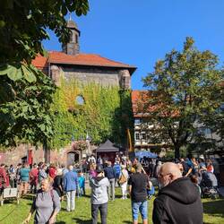 Das war also Samstag unsere erste Mission, die uns nach Northeim geführt hat. Die Stadt hatte gerade einen Mittelaltermarkt eröffnet. Ich hatte erst Skrupel mir eine Waffel noch vor der offiziellen Eröffnungzu bestellen, aber der Verkäufer kannte da nichts. Als Michel ihm Trinkgeld gab, bimmelte er eine Glocke mitten in die Eröffnungsrede des Bürgermeisters hinein und schrie "Trinkgeld". Wir hatten die Aufmerksamkeit von allen Anwesenden inklusive Bürgermeister. Genau meins.
