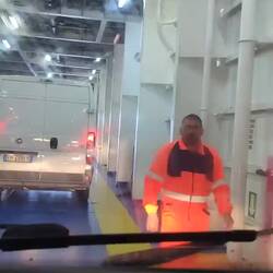 Die Fährfahrt verlief ganz unspektakulär. Die Moby-Fähren ähneln der Grimaldi-Fähren sehr. Vielleicht minimal besser. Die Gäste treffen das Klo auf beiden Fähren nicht. Zum Glück hab ich eine trainierte Blase und musste nur einmal auf die nicht abschließbare Toilette. Die Sessel waren nicht ausgebucht, so dass Michel und ich beide eine eigene Reihe hatten und über 3 Sessel längs schlafen konnten. Theoretisch, da ich erst mitten in der Nacht gemerkt hab, dass Michel umgezogen ist und völlig unnötig nur auf 2 geschlafen habe. Aber ich kann ja bekanntlich eh überall schlafen, daher tip-top. Wir sind ja nun schon erfahrenere Fährreisende und nachdem mich diese Abzocke beim Frühstück letztes Jahr so abgefuckt hat, haben wir uns diesmal nur einen Kaffee geholt und entspannt gewartet, bis wir zu den Garagen und Autos durften.