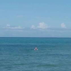 Am Montag hat Michel das Sub aufgepumpt und wir sind um die südwestliche Spitze rum, ich auf dem Sub und Michel im Wasser. Und auf der Rücktour hat Michel tatsächlich einen Rochen entdeckt. Ich hatte meine Tauchmaske mit und bin dann auch nochmal ins Wasser. Richtig toll, gerade weil wir bei Greenscreen auch eine Doku über Mantarochen gesehen haben. Unser war natürlich sehr viel kleiner im Vergleich, aber sie bewegen sich einfach so schön.