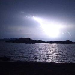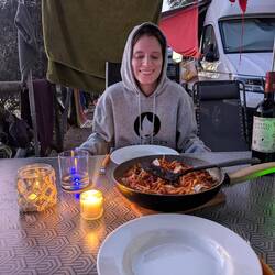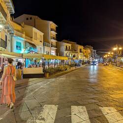 Abends haben wir gekocht oder sind Essen gegangen. Am Montag wollten wir zu einem Foodtruck, den wir beim öffentlichen Strand haben stehen stehen, aber als wir dort ankamen, standen nur noch die Stühle gestapelt dort. Kurz entschlossen sind wir dann den Weg zum Turm hoch, zu einem Restaurant, dessen Lichter wir von unserem Platz immer sehen konnten. Das entpuppte sich als richtig verwunschener Ort. Ich bestellte wieder sardischen Spezialitäten und Michel hatte wirklich leckeres Rindfleisch. Der Kreis schloss sich gleich doppelt, zum einen waren wir endlich bei den schönen Lichtern und zum anderen tranken wir Wein aus den Weinbergen, an denen wir uns mit Brenda vorbeigearbeitet hatten, um zu der Grotte zu kommen. Wie sich dann am nächsten Tag herausstellte, war es sogar der letzte Abend der Saison. Am nächsten Tag blieben die Lichter aus.