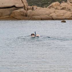 Am Dienstag sind wir dann nochmal um die andere Spitze, diesmal auf dem Hinweg beide auf dem Sub, auf dem Rückweg dann Michel im Wasser und ich auf dem Sub. Zwischendurch war ich dann auch noch schnorcheln. Wir haben uns vom Wasser aus das Hotelresort, das sich unserem Campingplatz anschließt, nochmal genauer angesehen. Hier ist die Bucht auch sehr schön. Sehr viele Felsen Unterwasser.