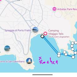 Der letzte Wasserausflug führt uns erst zusammen auf dem SUP in Nordrichtung um unsere Landzunge, ich stelle ein Maps Screenshot mit der Route ein. Wir waren absolut hyped, denn das Wasser war so herrlich ruhig. Naja. Der Weg zurück, für Judith alleine auf dem SUP und für mich schnorchelnd wurde immer anstrengender, denn es kam sehr schnell ziemlich raue See auf. Nach insgesamt 2,4 km und über 1km davon in echtem Seegang, waren wir beide danach gut vorbereitet für ein paar Stunden auf der Sonnenterrasse.