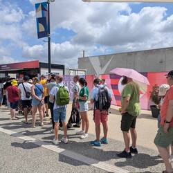 Wir hetzen zu 14:30 Uhr zu unserem Shuttle, da wir nicht wieder um 16 Uhr plus minus beim Parc de Champions ankommen wollen, um nicht wieder eine Stunde anstehen zu müssen.