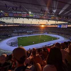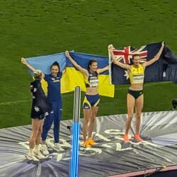 Interagiert haben wir natürlich mit allen, bis auf die Südafrikaner. Ohne bestimmten Grund. Wobei, die haben sehr oft unsere Flagge auf ihren Köpfen gehabt, das ist ja auch eine Art der Interaktion. Am meisten jedoch mit den Australiern, weil wir beim Hochsprung, mit unserer Christina Honsel und deren zwei Weltklasse Springerinnen, naturgemäß die größte Schnittmenge hatten. Leider hat ihre so besondere Tagebuch schreibende und tanzende Nicola Olyslagers nur Silber gewonnen. Die mag ich nämlich deutlich lieber als die Ukrainerin, die aber heute wirklich die Bessere war und von uns allen auch extrem gefeiert und angefeuert wurde.