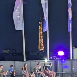 Auf der Rückfahrt war schnell klar, dass wir Amélie zum Campingplatz bringen müssen. Sie hat Halsweh, hustet und hatte um 21 Uhr auch schon 8h Hitze und Gedränge hinter sich. Aber Judith und ich haben ja noch unser to do "olympisches Feuer fliegen sehen!" auf dem Zettel.