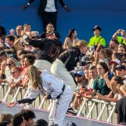 Wir schlafen, wie immer, lang und bereiten in aller Ruhe das Frühstück vor. Jedoch klagt Améliechen über Halsschmerzen. Hm hm hm. Passt ja nun mal gerade gar nicht in den Plan zusammen ins Deutsche Haus... ich korrigiere, in die Fanzone des deutschen Hauses ... zu fahren, wofür wir 2x Erwachsenen Karten (20,-) und 1x Kinderkarte (10,-) gekauft hatten. Die Korrektur ist nämlich gar nicht unentscheidend, denn Karten zum Deutschen Haus kosten entspannte 390,- ... warum nicht? Ich zeige auf einem Foto, wie der räumliche Unterschied zwischen Fanzone und deutschem Haus ist. Der inhaltliche Unterschied ist, das sehr sichere Antreffen von Sportlern im deutschen Haus und auch von Politikern. Zweiteres ist auch der Grund dafür, dass die deutsche Polizei die Sicherheitskontrolle durchführt. Hat mich gewundert und ich habe sie gefragt, ob die Bude (Stade Jean-Bouin) tatsächlich so etwas wie Konsulatsstatus hat, oder warum die deutsche Polizei sonst hier sei. Nein, das nicht, aber da Fanzone und deutsches Haus so eng verknüpft sind und hier viele hochrangige Politiker zugegen seien, ist auch die deutsche Polizei da. Na gut.