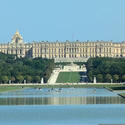 Versailles ist schon ein ordentliches Stück draußen und dort direkt vor den Toren angekommen, sieht es auf der Veranstaltungskarte so aus, dass wir nur einmal um das Schloss herum müssen, durch den Garten gehen und schon sind wir da. Aber der Sonnenkönig muss wirklich ein speziell selbstverliebter Kollege gewesen sein. Wir brauchen von vor den Toren Versailles bis zum Ende des "Gartens" 15 min mit dem Bus und nochmal 25 min zu Fuß. Zum Glück zum Glück zum Glück, 97% des Weges im Schatten großer Bäume.