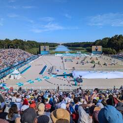 Um 13 Uhr verlassen wir bei brütender Hitze den Campingplatz und brechen Richtung Versailles auf, um dort das Herren Finale im modernen Fünfkampf anzuschauen. Übrigens, das letzte Mal mit Pferden. Schade, wie wir später noch sicherer wissen werden, als wir es schon zum Zeitpunkt des Aufbruchs vermuten.