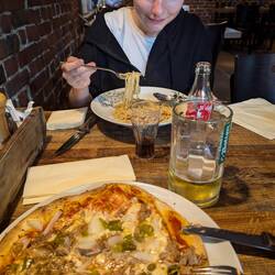 Da das "Abseits" (unsere 1. Wahl) leider wohl abgebrannt und abgerissen ist, wirklich nur noch als ein großer Schutthaufen daniederliegt, fahren wir direkt weiter zum besten Italiener Essens. So zumindest ein Google Rezensent. Und wirklich, auch wir sind begeistert (Pizza, Carbonara und Trüffelpasta), alles mega!