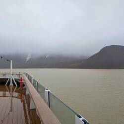 Sailing conditions improved considerably and we woke up on the 31st inside the Evighedsfjorden otherwise known as the Eternity Fjord as it is very long. We were stationed right next to a glacier and they started zodiac cruises at 8.30am. It was still very misty and rainy so many guests chose to view the fjord and glacier from inside the ship. As it was our last day on board,many guests (including me) needed to repack our bags and have them ready by 9pm ie outside our cabins, for the crew to collect. We also had to do things like return the boots, finalise accounts etc. There was a session in the afternoon to discuss or question the main officers of the ship as well as the Captain’s farewell where we got to thank not just those crew members we see every day but also all those who worked behind the scene to make our voyage go smoothly. Dinner was Beef Wellington - you can just imagine how the Aussies on board reacted to that. It was actually very nice as have all the meals we have had. We had one last serenade by our waiters which was lovely.