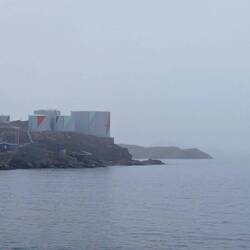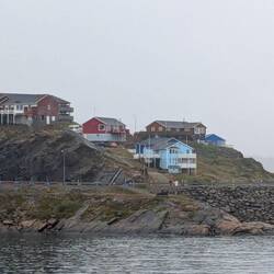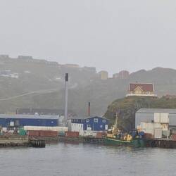 After such wonderful weather in Ilulissat, we woke on Saturday to mist, rain and very cold temperatures. We also had endured high winds and large swells overnight and on the morning of the 30th. I find these VERY bouncy conditions difficult so found myself hugging walls and restricting my movements around the ship. Luckily I was assisted out to the pool deck at 11am for hot tomato soup and cheese toasties. It was delicious but I went back inside quickly as it was cold and very wet. We arrived in Sisimiut just before lunch and were relieved that the conditions inside the bay were quite mild. However, the town was covered with mist/fog and it was raining still. The ‘Panoramic Scenic Bus Tour’ I had booked was cancelled so decided to stay dry and onboard as did a lot of guests. Those who went ashore, returned cold and wet. It was a pity about the weather as Sisimiut looked to be a pretty town - we just couldn’t see it all that well. That night we were entertained by the charity auction that is always held by HX and they did raise a reasonable amount of money as people tended to go a little crazy over some of the auction items. After the auction, the crew band got guests up dancing and generally having fun.