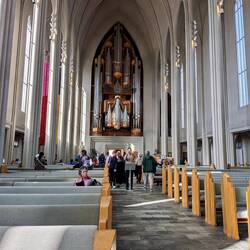 Yesterday Joyce and I decided to do the Hop on Hop off scenic bus tour of Reykjavik. She had an extra day before she flew home to Edinburgh. It was a good day to see the town and a good way to see the main attractions. We did a loop first to work out what we wanted to see and the, on the second loop, we got off at an attraction called the Flyover. This was fun once we got through some stuff about the early Vikings and Trolls. You do a ‘flyover’ of various areas of Iceland. It was very realistic. Excellent stuff. We also visited the Whales of Iceland display (life sized models), the main church, walked down a key shopping road and then came back to the hotel. It was after 4pm and the traffic was awful so this seemed to be a good idea. The church - Hallgrimskirkja - is the largest in Iceland and dedicated to the sacred poet of Iceland, Hallgrimur Petursson. Its architecture is in keeping with what I saw - modern, minimalist and still quite beautiful. There is very little adornment inside the church and there is a statue of the poet in front of it. We started and finished at the Hofoi House. This is where Reagan and Gorbachev met in 1986 to end the Cold War.