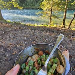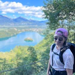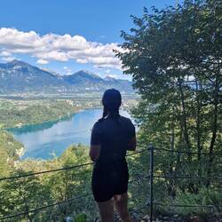 Nach eher weniger gutem Schlaf und einer sehr kalten Nacht (wir hatten vergessen die Standheizung einzuschalten) starteten wir gegen 08:00 Uhr gemütlich in den Tag. Es gab erst mal Porridge und Kaffee am Fluss bevor wir uns dann bei strahlendem Sonnenschein Richtung Bled machten. Den ursprünglichen Tagesplan hatten wir gestern bereits verworfen und uns kurzer Hand für eine 5h Wanderung um den Bleder See und schmerzhaft aussehenden Treppen zu einem Aussichtspunkt entschieden. Die Fahrt nach Bled war relativ entspannt und bevor es los ging wollten wir noch schnell zum Spar Wasser kaufen, da wir natürlich nichts mehr zu trinken hatten. Turns out: auch in Slowenien haben die Supermärkte sonntags zu, also ließen wir unser Geld bei der Tankstelle. Mit etwas Verzögerung machten wir uns dann also los in Richtung Wanderstartpunkt zum See, bis uns auf halber Strecke auffiel, dass wir vergessen hatten ein Parkticket zu kaufen. Also wieder zurück zum VW Bus, Ticket kaufen und von vorne. Mit etwa 1,5h Verspätung starteten wir dann endlich unsere Wanderung. Der Bleder See war wirklich wunderschön, aber auch sehr touristisch, vor allem wurde man immer von Familien auf den Fahrrädern belästigt. Der erste Sightseeing Stop auf unserer Route war die Burg von Bled, zu der auch schon einige Treppen hochgingen und wir natürlich kein Eintritt zahlten um uns das Spektakel von innen anzusehen. Weiter ging's dann am Seeufer entlang und die von Lena hoch ersehnten Treppen hinauf auf einen "Berg" von wo aus die Aussicht gleich 0 war. Natürlich viel zu wenig Proviat dabei, verbrachten wir dann unsere Mittagspause mit einer Cliffbar und einem Schluck Kaffee. Erleichtert, dass wir den höchstes Punkt der Tour erreicht hatten, und erschrocken dass wir noch 10km vor uns hatten rafften wir uns auf den letzten Teil der Route zu bewerkstelligen. Hier gings den Berg wieder runter und durch richtig schöne und erstaunlich gepflegte slowenische kleine Orte und durch den Wald wieder zurück zum Ausgangspunkt am See. Da es mittlerweile schon 17:00 war skippten wir den geplanten Kaffee und Kuchen Stop und fuhren direkt "nach Hause" zu unserem Camp. Komplett durchgeschwitzt und verklebt freuten wir uns wahnsinnig auf die Dusche bevor wir uns ans Abendessen machten. Heute auf der Speisekarte: Gnocchis mit Pesto und Spinat - natürlich wieder an unserem Spot am Flussufer. Trotz Müdigkeitslevel 1000 führte kein Weg dran vorbei heute noch ins "Office" zu gehen aka. unsere komplette Route umzuplanen, weil es natürlich an dem Tag an dem wir in die Berge wollten Unwetter geben soll. Bei 5 Tagen insgesamt bleibt da leider nicht so viel Spielraum, aber wir haben (hoffentlich) eine gute Lösung gefunden. Diese kostet uns leider eine Camping Gebühr extra weil man so spontan doch nicht stornieren kann aber so what? Office wird wieder geschlossen für heute und jetzt noch schnell abspülen und dann ab in den Camper, den wir ordentlich einheizten und dann eine kleine Krise hatten weil sich der Fahrersitz nicht mehr drehen ließ und nach dem Tag alles zu anstrengend war. Wir schafften es noch 2 Runden Qwinto zu spielen und um 21:00 Uhr war dann aber auch Schicht im Schacht und wir fielen hundemüde ins Bett. Auf eine lange und gute Nacht!Read more