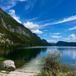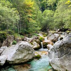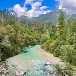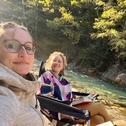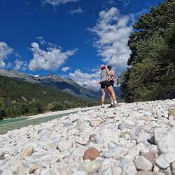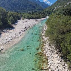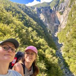 Zurück auf unserem Liebslingscampingplatz haben wir geschlafen wie Steine. Aber um 08:00 mussten wir dann trotzdem langsam aufstehen und wir freuten uns direkt wieder auf unser Porridge am Fluss, das wir gestern schon ein bisschen vermisst haben. Kleine Empfehlung für alle die vorhaben nach Slowenien zu reisen: Eco River Camp ist the place to go! Aber leider mussten wir heute wirklich Abschied nehmen und wir setzten die Reise fort über den Vršičpass, ein Gebirgspass im Triglov Nationalpark. Der erste Stop auf der Route war der Jasna See in Kranjska Gora, ein kleines Skigebiet mit einem wunderschönen See inmitten des höchsten Gebirge Sloweniens und einem fast noch schöneren trockenen Flussbett dahinter. Wir hatten es ganz gut erwischt, da wirklich nur ein paar Touristen vor Ort waren und wir so alles in Ruhe genießen konnten (in der Hochsaison ist es hier wahrscheinlich wahnsinnig überlaufen und nur noch halb so beeindruckend). Unsere Fahrt ging weiter den Pass hinauf mit kleinen Stops mal hier und mal da und ein paar Schweißtropfen auf der Stirn beim Parken und in den engen Kurven der Serpentinen. Oben angekommen auf ca 1500m ü. M. machten wir ein kleines Päuschen auf einer Hütte mit Blick auf die atemberaubende Felswand und probierten unsere erste (und wahrscheinlich letzte) traditionell slowenische Speise: Prekmurska Gibanica, ein kleiner Schichtkuchen mit Mohn-, Walnuss- und Apfel-Füllung. Mit der Kulisse im Hintergrund natürlich 10/10. Gestärkt ging's mit unserem VW Bus noch ein Stück höher auf 1611m ü. M. bevor es dann nur noch in Serpentinen bergab ging ins Soća Tal. Unterwegs hielten wir nochmal auf einem Parkplatz um einen kleinen Abschnitt des bekannten Soća Trails, ein 25km langer Wanderweg entlang des Flusses Soća, zu gehen. Wir schafften es bis zur Quelle, von welcher der Fluss entspringt und mussten dann aber auch nach 1,5h Beine vertreten wieder weiter zu unserem neuen Camp. Dort angekommen kochten wir als mittlerweile geübtes und perfekt eingespieltes Team blitzschnell Abendessen (ich muss es nicht mehr sagen, es war natürlich wieder überragend lecker) und schnappten uns danach die Campingstühle und unsere Bücher und genossen die letzten Sonnenstrahlen am Flussufer. Wenigstens das erinnert an das Eco River Camp, welchem wir wirklich stark nachtrauern. Wie ihr mittlerweile wisst passiert am Abend nicht mehr viel: abspülen, eine kleine Spielerunde und ab ins Bett. Morgen steht schon unser letzter voller Tag an, den wir in alles Zügen genießen wollen.Read more