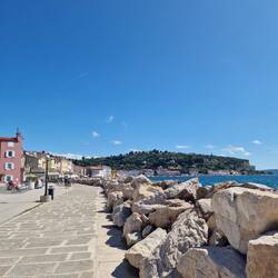 Ausgeschlafen mit +9h Schlaf starteten wir heute in aller frische in den Tag. Wie die eintägige Tradition verlangt, genossen wir wieder Porridge und Kaffee in unseren Campingstühlen am Flussufer. Anschließend wurde das Haus zusammengepackt und wir starteten unsere neu geplante Route nach Piran an den Küstenteil des Landes. Einen Campingplatz konnte man hier nicht reservieren, hier gilt: Wer zuerst kommt malt zuerst. Laut Navi gestern Abend war die Fahrt 1,5h - heute morgen mit Verkehr schon 2,5h, upsi. Aber halb so wild, da allein die Strecke schon so schön war und wir nach 2h auch schon das Meer erblickten. Wir hielten am Campingplatz direkt am "Strand" und siehe da, wir haben sogar noch einen Platz bekommen. Den Platz und das Clientel kann man zwar absolut nicht mit unserem vorherigen Camp vergleichen, kurze Erkäuterung: hier campen Menschen weil sie Strandurlaub wollen aber kein Geld dafür haben, und im ECO River Camp waren die Menschen campen, um in der Natur zu sein (und wahrscheinlich weil sie das Geld hatten). Geparkt und an den Strom angeschlossen machten wir uns an der Küste entlang Richtung Piran, eine kleine autofreie Stadt am Zipfel des Landes. Wir schlenderten durch die Gassen, haben durch Zufall das beste Eis der Stadt entdeckt und tranken Kaffee aus einem Stilglas - was man halt so macht im Urlaub. Als wir gefühlt alles abgelaufen und in jede Gasse geschaut hatten ging's zurück zum Camp. Obwohl wir beide keine typischen Strandurlauber sind haben wir den Spot bestmöglich genutzt und unsere Campingstühle, ein paar Snacks und Bücher geschnappt und uns an einen etwas abgelegenen Steinstrand gesetzt und den Nachmittag in vollen Zügen genossen. Gegen Abend gings dann unter die Dusche und es gab mal wieder selbstgemachtes Dinner vom feinsten (wir sind selbst ein bisschen überrascht von unseren Campingkochkünsten). Nach dem Spülen gab's zum kleinen Spieleabend noch ein Gläschen Gino (Wein & Gin), wie Strandurlauber eben den Tag ausklingen lassen. Aber mehr als 1h haben wir auch nicht geschafft und um 22:00 lagen wir auch schon wieder in den Kojen. Bis morgen.Read more