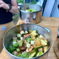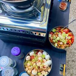Ein letzter Morgen in Slowenien. Der Wecker klingelte um 07:30 Uhr und wir packten nach dem Zähneputzen schonmal alles von den Schränken in unsere Rucksäcke, während das Wasser für den Kaffee kochte. Natürlich zelebrierten wir noch ein letztes Mal unser Frühstück am Flussufer, so viel Zeit musste sein! Aber dann wurde auch schon abgespült, durch den Bus gewischt und (endlich !!) alle ekligen Lappen und Handtücher, nachdem sie ihren treuen Dienst erwiesen hatten, in den Müll geworfen. Gegen 10:00 Uhr ging es dann los in Richtung Erlangen. Der Campingplatz war so ab vom Schuss, dass der schnellste Weg über Serpentinen nach Italien ging, bevor wir dann durch Österreich und nach Deutschland fuhren. Das Wetter wurde zunehmend schlechter und unsere Pause am Chiemsee, auf die wir uns eigentlich gefreut hatten und nochmal ein bisschen Urlaubsfeeling genießen wollten, endete so, dass wir am Rastplatz mit Blick auf den See hielten und das Auto nicht verließen, weil es in Strömen regnete - die Snacks haben aber auch so geschmeckt. Podcasts, Musik, emotionales Schweigen und 1,5L Koffeingetränke brachten uns ca. 8h später sicher nach Erlangen. Hier wurde dann alles ausgeladen, nochmal durchgesaugt und der VW Bus zur Übergabe vorbereitet, während wir uns darauf vorbereiteten wieder in getrennten Häusern zu schlafen. Am nächsten Morgen müssen wir nur noch den Bus zurück geben und dann ist die Reise auch schon wieder vorbei. Aber nachdem das ja auch der Test war, ob wir es zusammen aushalten und zu dem Schluss kamen dass wir mit 1700km Autofahrt, 7 Tagen im Auto leben und Hygienestandards auf Campingniveau eine wunderschöne Zeit hatten, wird das womöglich nicht unsere letzte Reise zusammen gewesen sein! Um dem Abschied nicht zu schwer zu machen sagen wir: Alla hopp, schä war's!Read more