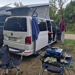 Theresa war so freundlich und hat uns in Höchstadt abgesetzt, wo wir unseren Bus abgeholten und die Reise losging. Hier fing das Abendteuer auch schon an, als der Typ bei der Übergabe selbst gar keinen Plan hatte, weder von der Versicherung noch wo das Stromkabel reinkommt, wie man die Sitze dreht oder ob es einen Herd gibt. Wir bekamen zwar einen nagelneuen VW Bus, aber ohne Küchenzeile (die wir gebucht hatten). Also mussten wir uns Campingkocher und Gasflaschen unangenehm erkämpfen und als diese Hürde überwunden war ging's erstmal zu Aldi, weil da Bettlaken im Angebot waren (als Camper Neuling kann man natürlich nicht an alles denken). Nach einem erfolgreichen Einkauf konnten wir um 12:15 Uhr endlich losdüsen in Richtung Slowenien. Mit netten Gesprächen, Planungen für den Pausenspot, einem Hörbuch und ein paar Mitgröl-Hits verging die Fahrt wie im Flug. Nach 3,5h machten wir in Salzburg eine kleine Pause "um uns die Beine zu vertreten". Das sah so aus, dass wir 10 Meter zum Café liefen und uns da auf die Couch legten und uns Kaffee und Apfelstrudel bringen ließen. Die letzten 3h Fahrt gings mit Podcast auf den Ohren nach Slowenien. Von Sonnenschein bis Starkregen war heute schon alles dabei, wir hatten also ehrlich gesagt auch keinen Plan was wettertechnisch auf uns zu kommt (und auch sonst nicht). Die Suche nach unserem Camp gestaltete sich noch etwas schwierig und wir wurden von einem freundlichen aber etwas aufdringlichen Slowenier auf seinen Ponyhof eingeladen falls wir keinen Schlafplatz hätten. Bis 21:00 Uhr war Check in - um 20:45 kamen wir im stockdunklen endlich an. Die Rezeptionostin war gedanklich auch schon im Feierabend also erkundeten wir unseren Stellplatz alleine. Glücklich, dass alles geklappt hat kochten wir dann unser erstes Abendessen, was mega lecker war aber eher einer Gefängnisration glich. Danach noch abspülen und ab ins Bett - dachten wir, bis wir an Tag 1 schon das komplette Proteinpulver im Camper verteilten und noch 30 Minuten putzen mussten. Ein eingesautes T-Shirt und eine eingesaute Hose, was wir beides heute schon geschafft hatten, reicht natürlich noch nicht aus. Um 24:00 waren wir dann aber soweit und es ging ab ins Bett - gespannt wie unsere erste Nacht im neuen Zuhause so wird.Read more