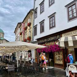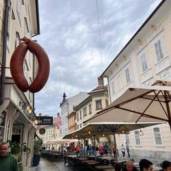Wir hatten schon auf dem Schirm (den wir nicht hatten), dass es heute regnen soll, aber als wir um 06:00 von Blitz und Donner geweckt wurden kam das doch etwas unerwartet. Da es so laut war konnten wir eh nicht mehr einschlafen und entschlossen noch schnell Zähne putzen zu gehen, bevor es anfängt zu regnen. Der Hinweg hat noch ganz gut geklappt, doch dann war leider nichts mehr zu retten und wir mussten eines der heftigsten Gewitter die wir je erlebt haben im stinkigen Damenklo abwarten. Wahrscheinlich ist nicht weit weg der Blitz irgendwo eingeschlagen der zeitgleich mit dem Donner so laut über Piran krachte. Als es nach ca. 30min etwas weniger wurde, beschlossen wir zurück zum Camp zu rennen, wo wir teilweise bereits knöcheltief durch Wasser mussten. Da wir ein kleines Fenster offen hatten war es im Camper auch klatsch nass als wir zurück kamen, aber jetzt war eh schon Hopfen und Malz verloren. Der Boden wurde mit dem nassen Zewa gewischt und die Addiletten mit dem gammligen Geschirrhandtuch abgetrocknet, welches direkt im Anschluss in den Müll gewandert ist. Ohne Kaffee oder Frühstück standen wir um 07:45 bereit zur Abfahrt und warteten bis das Tor aufgemacht wurde und wir endlich den Campingplatz verlassen konnten. Das Chaos im Camper haben wir gut ignoriert und uns im Regen auf den Weg zur Hauptstadt nach Ljubliana gemacht, wo das Wetter etwas besser gemeldet war. Auf dem ursprünglichen Plan stand heute eine Tageswanderung in den Bergen inmitten der Gewitterfront, bei welcher wir womöglich gestorben wären, hätten wir sie angetreten. In Ljubliana angekommen sind wir dann nur fast an der Parkplatzsuche gestorben, 2 mal falsch abgebogen, 5 mal im Kreis gefahren, Hunger, Durst, Pipi und alles zusammen hat unsere Nerven stark strapaziert. Als wir den Bus dann endlich in einer Tiefgarage mit 10cm Platz nach oben, rechts und links geparkt hatten, ging's zur nächst besten Frühstücksgelegenheit. Ein Redbull auf der Fahrt um 09:30 Uhr hat die Koffeinreserven allerdings noch nicht aufgefüllt und selbst das Frühstück hat nur einen Teil zur besseren Laune bzw. körperlichen Fähigkeit zur Existenz beigetragen. Nichts desto trotz schleppten wir uns im Nieselregen zum ersten Programmpunkt, dem Schloss Tivoli. Hier nutzen wir nochmal die Toilette, aber eigentlich wollten wir nur ins nächste Café den nächsten Kaffee trinken. Danach sind wir dann langsam wieder ins Leben zurückgekehrt und konnten guter Dinge durch die Innenstadt Ljubliana's schlendern. Mittlerweile war das Wetter auch besser und die Stadt direkt freundlicher. Im Tourifieber angekommen bummeln wir durch viele kleine Läden und suchten uns direkt den nächsten Kaffeespot und Abendessen aus. Doch nachdem wir in gefühlt 30 Läden waren fing die Stimmung wieder an zu kippen aufgrund Entscheidungsschwierigkeiten aller Art. Ein bisschen stolz die Kurve nochmal gekratzt zu haben und die besten Entscheidungen getroffen zu haben tranken wir dann den 3. Kaffee und suchten anschließend noch schnell den Drachen, das Wahrzeichen der Stadt, was wir durch Zufall erfuhren. Beweisfoto geknipst und ab zum Abendessen. Anstelle eines typisch slowenischen Restaurants sind wir ausversehen in einer Asian Fusion Kitchen gelandet. Unser Fazit: 10/10, auch wenn wir jetzt wahrscheinlich nie erfahren werden was man eigentlich in Slowenien so isst (überwiegend eh sehr fleisch- und fischlastige Küche). Zufrieden und gut gesättigt ging's dann wieder zurück zur Tiefgarage. Hier funktionierte natürlich unsere Karte nicht mehr und wir konnten weder zahlen noch die Schranke öffnen. Aber dank eines hilfsbereiten Sicherheitsmenschen konnten wir auch das Problem lösen und dann gings ab "nach Hause" zurück zu unserem favorite ECO River Camp. Noch ne kleine Game Session inklusive Nachtisch und dann ab ins Bett - wie immer.Read more