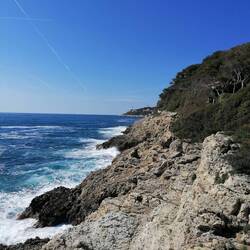 Wir sind heute den ersten Teil des Rundwanderweges gegangen. Er beginnt am Paloma Beach Nähe Marina St. Jean und führt um die erste Halbinsel mit der schwarzen Madonna und dem Kloster herum.