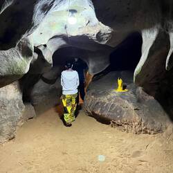 In der Höhle ist Sand, die Wände voll mit Korallen - der Teil lag mal komplett im Meer vor hundert Millionen Jahren.