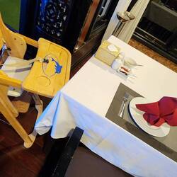 An hour and a half later, we were back. Our food got reheated. No high chair ment I became a human jungle gym. Not easy. Plus we made a mess everywhere. Safe to say though, Tyde liked the rice noodles from the Pho.Les mer