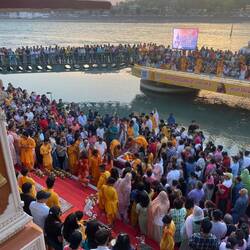 We met Sandra and took to the streets. It was a 40-minute walk to cross the Ganges over to the Parmarth Niketan Ashram on the Triveni Ghat.