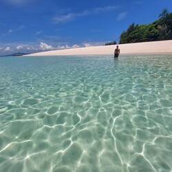 Auf der Suche nach dem kristallklarsten Wasser der Welt, sind wir auf Bamboo Island gelandet. Die Insel besteht eigentlich nur aus Sand umgeben von einem unendlich grossem türkisblauen Meer.