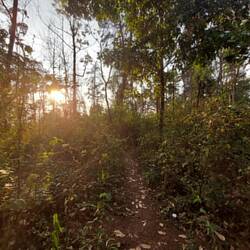 Die Sonne stand schon tief und so fuhren wir weiter. Nun fuhren wir an einem Viewpoint vorbei hoch bis auf den Berg. Eigentlich ist der letzte Teil fahrverbot, doch Martina, war nach dem langen Tag Rollerfahren erschöpft und meine Argumente für eine kleine Wanderung anscheined zu wenig überzeugend. So hielt ich die Schranke mit einem mulmigen Gefüh hoch, während Martina den Roller unten durch schob. Wir fuhren hoch und liefen 5min zum Gipfel. Da der Gipfel sich im Wald befand und nicht die erwartete Aussicht bot, entschieden wir uns zurück zum Viewpoint für den Sonnenuntergang zu gehen. Martina meinte, zum Glück sind wir mit dem Roller hoch, sonst würden wir es nicht zum Sonnenuntergang schaffen.