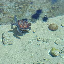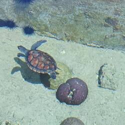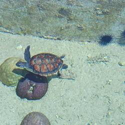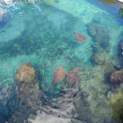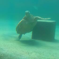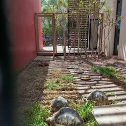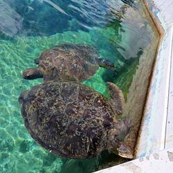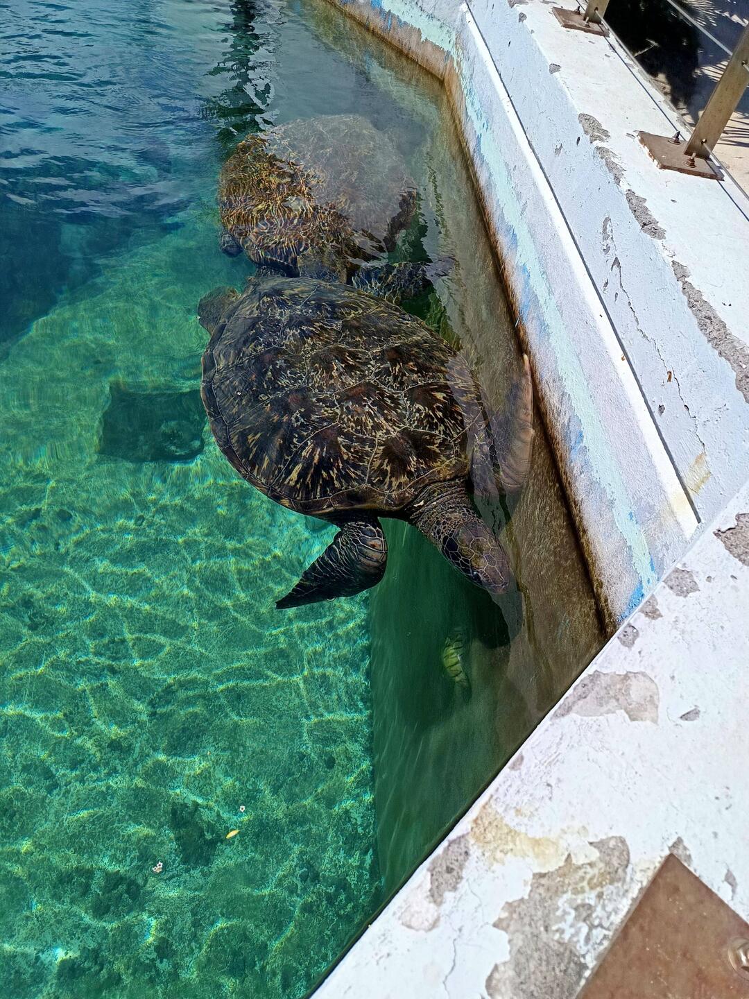 Notre programme commence par la visite de Kelonia. Ici, ce qui fut un élevage commercial de tortues marines pour leur chair, leur cuir et leurs écailles est devenu un centre de soin. EnLæs mere