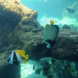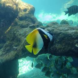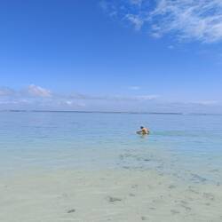 Ce matin nous avons chaussé nos palmes, et nos masques pour aller nager dans le lagon. L'impression d'etre dans un aquarium est réelle et magique. Nous avons pu observer de nombreux poissons trèsLæs mere