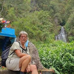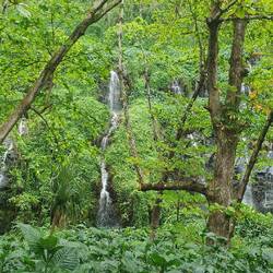 Aujourd'hui nous étions dans le cirque de Salazie, un cirque à la végétation luxuriante d'où jaillissent de superbes chutes d'eau. Après le pisse-en-l'air qui tombe sur la route entre laLæs mere