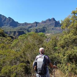 Nous sommes toujours à Cilaos après avoir passé la nuit à la Villa Kazuera que nous quittons alors que le soleil perce au dessus des montagnes qui bordent le cirque. Au programme la randonnée deLæs mere