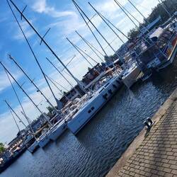 Geli und Michi haben sich Samstag auf den Weg nach Hause gemacht. Wir sind noch eine Nacht geblieben und haben Sonntag morgen um 8 Uhr den Strelasund Inselkurs gespielt!