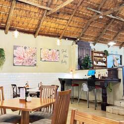 Danach bummle ich durch kleine Läden und charmante Galerien, die neben dem Café um eine grüne Innenanlage verteilt liegen - ähnlich wie im Barnedale-Zentrum am Anfang meiner Reise. Mein Jagdinstinkt hat von „Tiere” auf „Mitbringsel“ umgeschaltet. Ich finde einige schöne Dinge, die ich eigentlich nicht brauche, aber die Erinnerungen mit sich tragen. In einer Kunstgalerie kann ich einem Warzenschwein aus Ton mit einer wunderschönen Glasur eines lokalen Künstler nicht widerstehen. Wie ich alles im Gepäck verstauen kann? Keine Ahnung - darum kümmere ich mich später. 😅