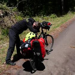 Wir radeln weiter, zum Schluss noch lange bergab, aber auch nochmal heftig hoch. Da raschelt es auf einmal neben mir im Wald und da steht tatsächlich ein Bär. Aber da wir nichts Schützendes um unsRead more
