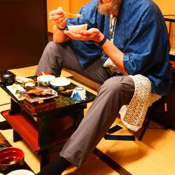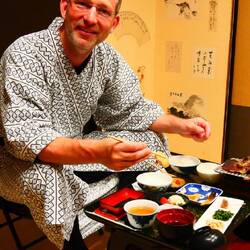 Heute Morgen sind wir in unserem lokalen Outfit zum Frühstück erschienen. Vor dem Raum werden die Schuhe ausgezogen. Das Essen im Knien funktioniert nicht, daher wird einfach der "Tisch" durch einRead more