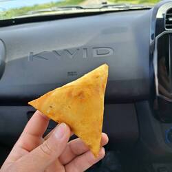 Zum Abschluss vom Urlaub hielten wir nochmal in der Lunchbox für ein Steak Pie und Samoosas🥰