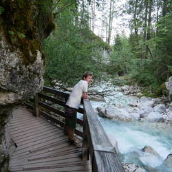 Es geht am Boka Wasserfall los das Tal hinunter, auf der längsten Hängebrücke über die Soča und dann wieder zurück. Der Fluss hat wiklich eine fantastische Farbe und im Panorama der julischen Alpen wirkt es umso schöner.